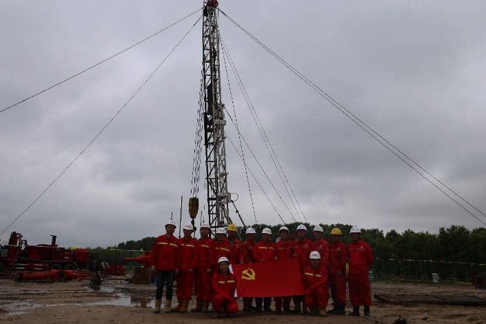 7月1日沈阳地质调查中心松辽盆地北部页岩油调查项目党支部联合中原井下、东北石油大学党组织在松页油1HF井工作现场联合开展“不忘找油初心、牢记调查使命、勇于科技创新、奉献无悔人生”迎七一主题党日活动。
