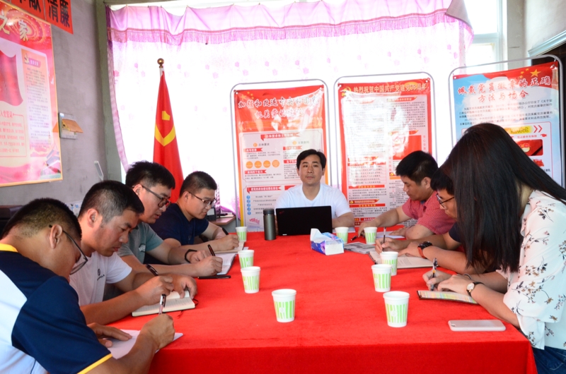 2019年7月1日,为庆祝中国共产党建党98周年,“冀北-辽西中新元古界油气地质调查”项目组开展了“不忘初心、牢记使命”主题教育,沈阳地调中心副主任张大权到野外驻地同大家共庆党的生日,并上了一堂题为“‘七问’明理,坚定初心”的党课。