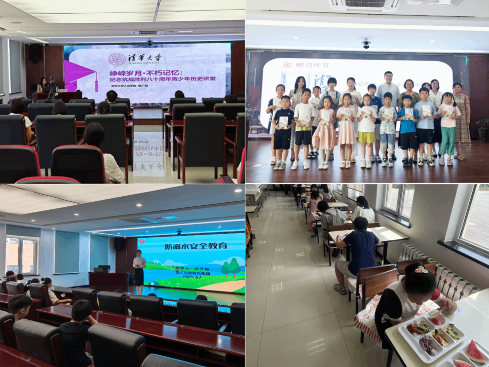 在此次托管班开班之际,邀请清华大学历史学博士开展红色教育,举办“纪念抗战胜利八十周年青少年历史讲座”,赠送励志书籍;邀请珠江五校教育集团教师开展安全教育,进行“防溺水”知识专题讲解。此外,中心属地街道办事处、社区大力支持此次暑期托管班,邀请中心托管儿童参加集体研学活动,发动沈阳师范大学、南京理工大学在读教育相关专业学生开展志愿服务,为托管儿童进行手工制作、书法绘画、读书声乐等兴趣教学。
