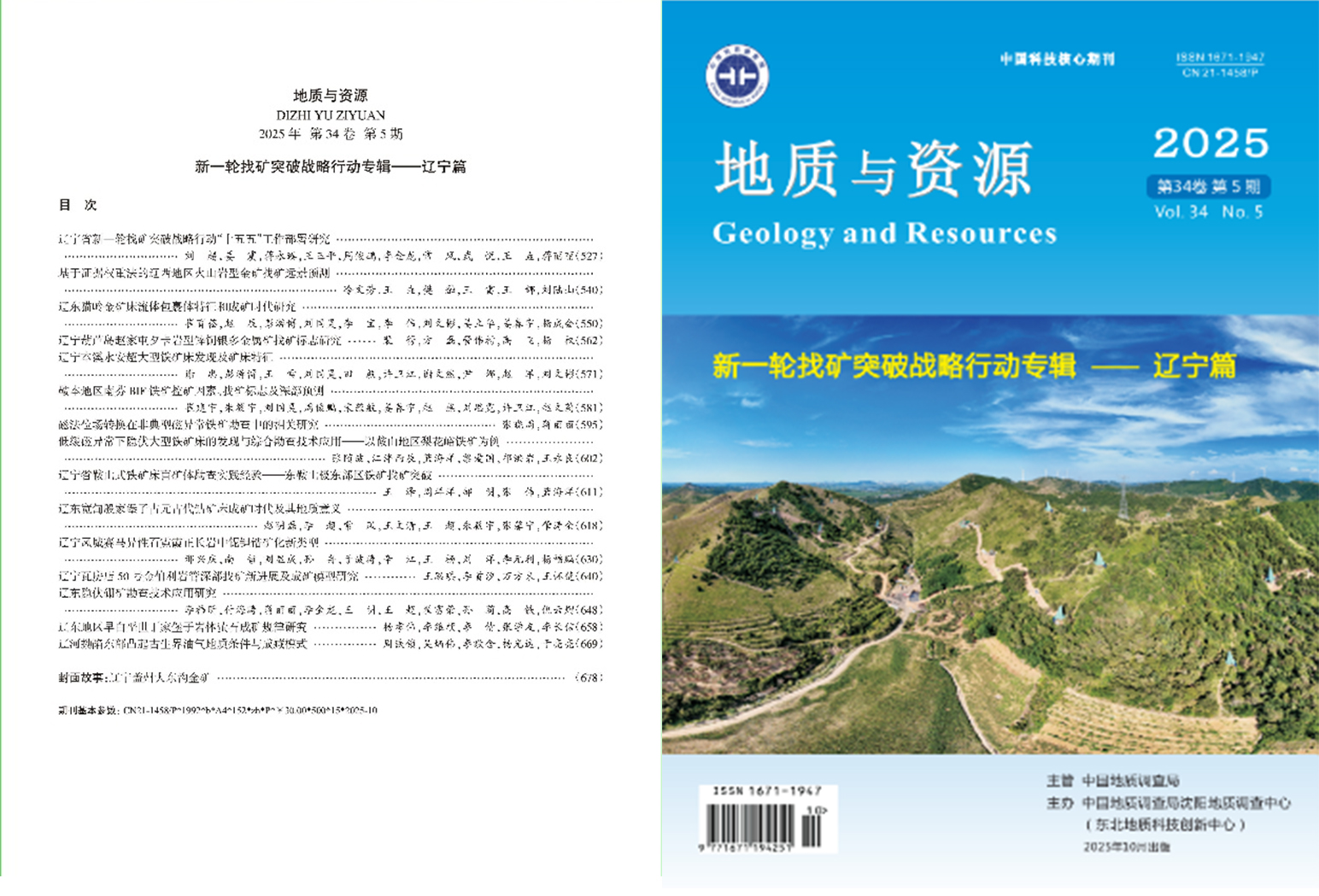 《地质与资源》(英文译名Geology and Resources)是由中国地质调查局主管、中国地质调查局沈阳地质调查中心(东北地质科技创新中心)主办的地学类学术期刊,连续多年入选中国科技核心期刊,是东北地区宣传新时代地质事业的重要窗口和探讨重大资源环境问题的重要平台。本期出版新一轮找矿突破战略行动系列专辑,聚焦辽宁省“十四五”金、铁、铜、钴、硼、铌袒、油气等矿种勘查成果与“十五五”找矿工作部署,着力报道来自野外一线地质科技工作者的优秀找矿实践,现已上线期刊官网和知网、维普、万方平台,欢迎广大读者下载引用。