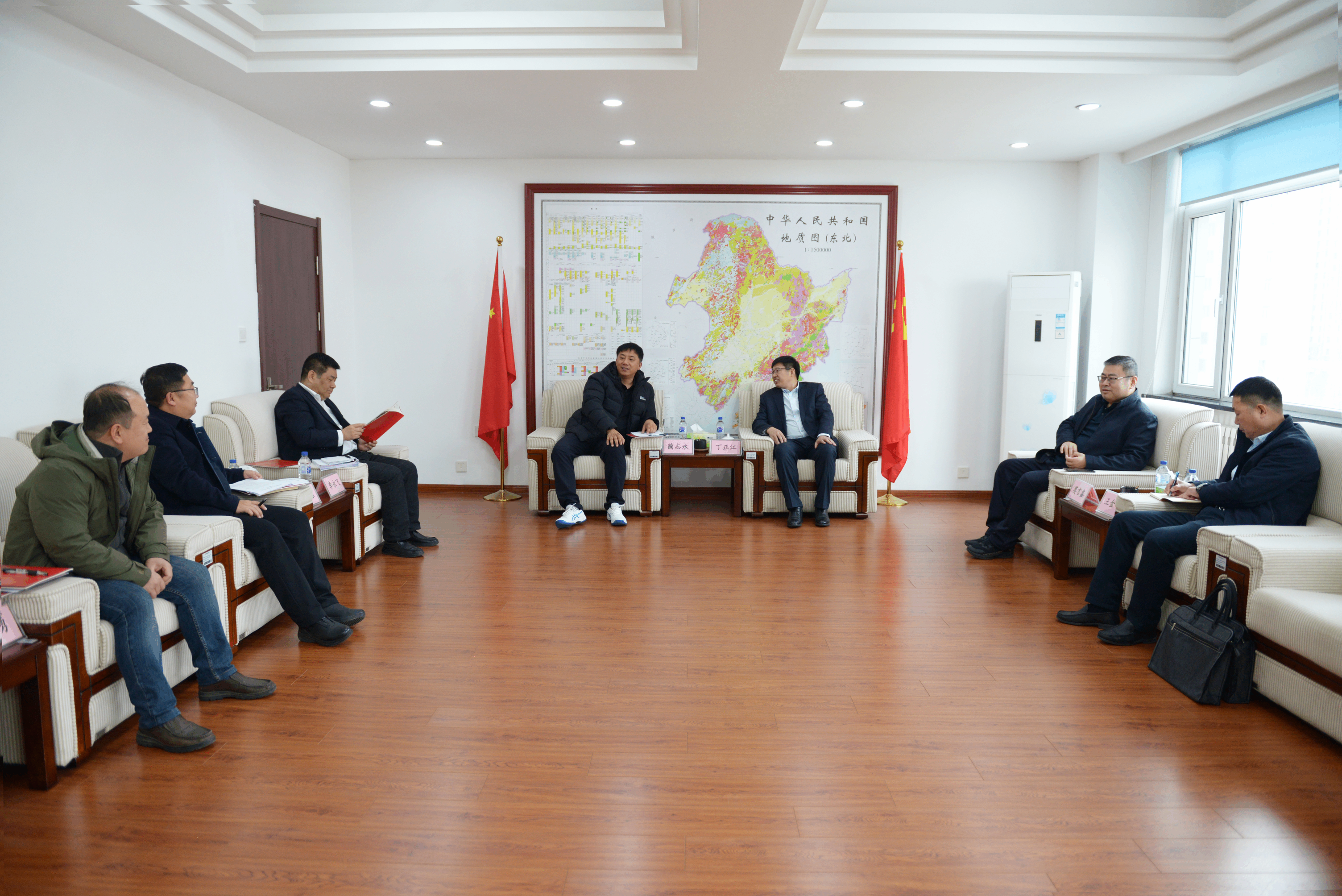 2026年3月4日,山东省地质矿产勘查开发局第六地质大队(以下简称“山东地质六队”)党委书记、大队长丁正江带队到访中国地质调查局沈阳地质调查中心(以下简称“沈阳地调中心”),双方围绕深化项目合作、协同技术攻关、促进成果共享等议题举行座谈,共谋“十五五”时期地质调查事业高质量发展路径。沈阳地调中心主任、党委副书记蔺志永主持座谈会。