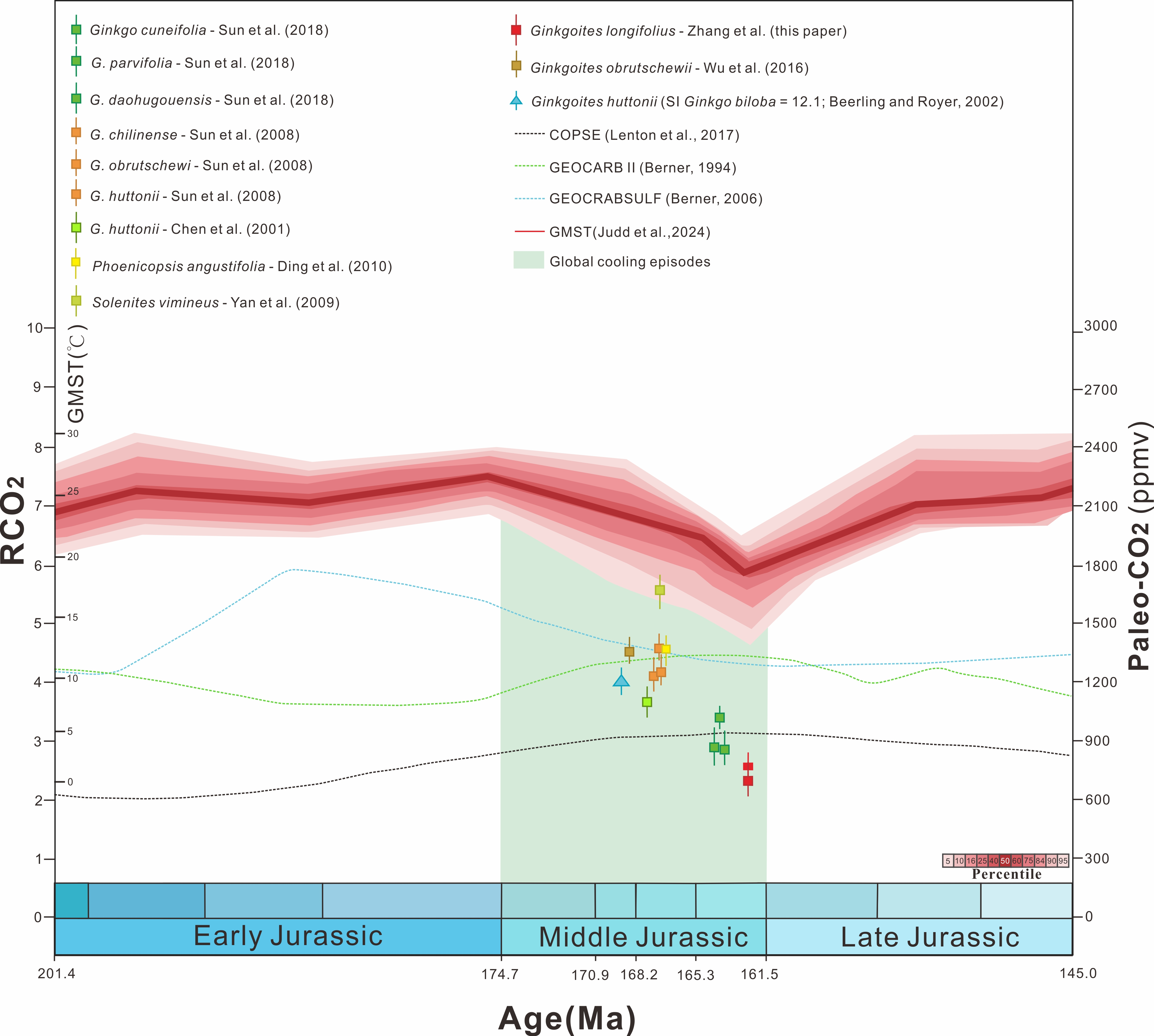 图1 中侏罗世古大气二氧化碳浓度估值