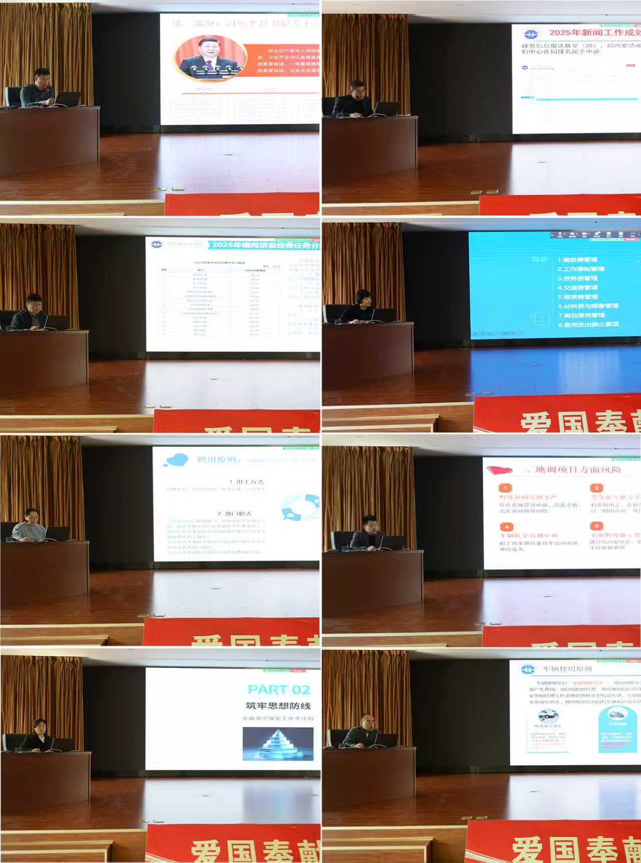 办公室、科技处、财务处、人事处、纪审处、安全保密处、后勤服务中心等职能处室分别对新闻宣传、科技成果转化、野外项目经费支出、外聘雇工管理、车辆安全管理、办公间租赁、廉政风险及保密工作进行了专项讲解。中心主任蔺志永讲授《安全生产公开课》并做总结讲话。公开课直面问题、以案为鉴,从强化安全意识、落实安全责任、防范野外风险等方面进行了深入阐述,强调全体职工要牢固树立安全发展理念,切实把安全生产工作贯穿出队全过程、各环节,全面落实2026年安全生产工作要点和全员安全生产责任清单各项部署要求。蔺志永在总结讲话中指出,全体干部职工要进一步统一思想,以局党组“两个加强、三个提升”工作思路为指引,以建“国家队”、当“排头兵”为目标,以统筹推进地调、科研和横向项目为支撑,以干部人才队伍建设为着力点,以落实全面从严治党主体责任、牢牢守住各类底线为保障,在“矿”上做文章、在“人工智能+地质调查”上做文章,在“资料二次开发利用”上做文章,努力把沈阳地调中心建设成为政治过硬、管理一流、能力突出、技术领先的综合性地质调查机构,为东北地区地质事业高质量发展贡献力量。