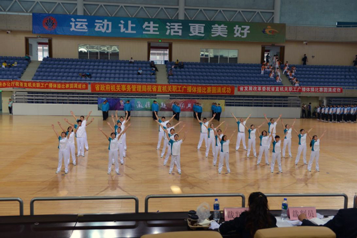 5月25日,辽宁省省直机关工会工委在沈阳市奥体中心网球馆举办了“2015年省直机关职工广播体操比赛”,由24人组成的中国地质调查局沈阳地质调查中心代表队参加了比赛,展示了中心职工队伍昂扬向上的精神风貌,提高了中心的知名度和影响力。